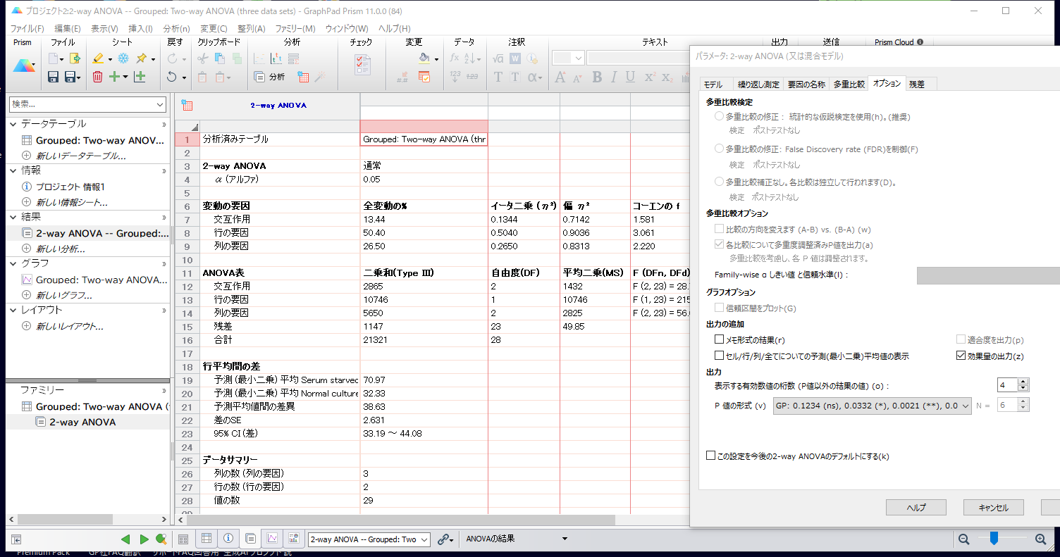 Grouped: Two-way ANOVA - 効果量の出力 - | Grouped: Two-way ANOVA - Report Effect Size -