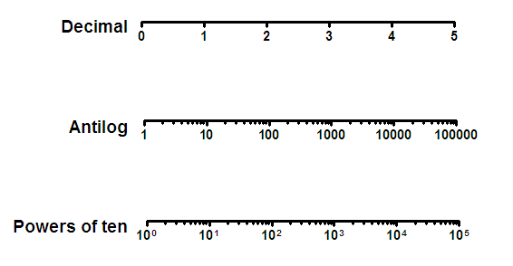 次の図では、10 進 (デフォルト)、10 の累乗、真数の表示を比較します。