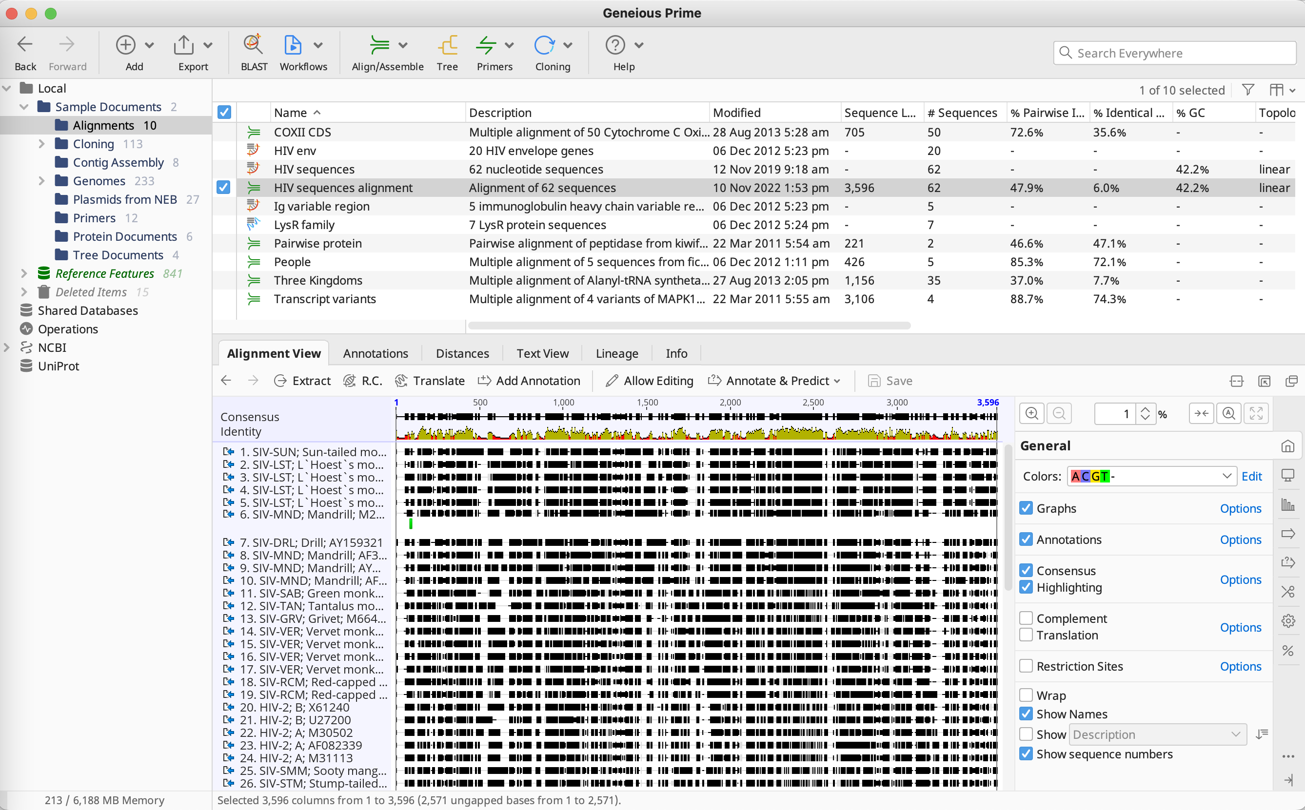 このチュートリアルでは、後天性免疫不全症候群(AIDS)の原因であるヒト免疫不全ウイルス(HIV)と類人猿の免疫不全ウイルス(SIV)の配列アライメントを作成していきます。