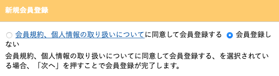 会員登録をしない場合「会員登録しない」にチェックを入れます