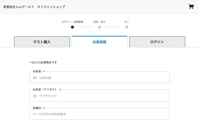 2-2. 新規会員登録 を希望される方は、新規会員登録に必要事項を入力ください。会員登録をすると次回のご注文の際に注文者情報入力する必要がありません。