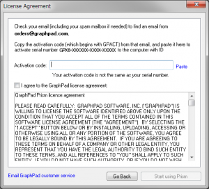 Prism5.04/5.0dより、インストールの際にオンライン登録およびアクティベーションコードの取得が必要となりました。Prism6でも、オンライン登録およびアクティベーションコードの取得が必要となります。インストール手順は下記をご参照下さい。
