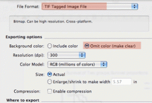 メニューバーのExportボタンをクリックし、File Formatのプルダウンメニューから「EPS」を選択し、ファイルをEPS形式にエクスポートして下さい。